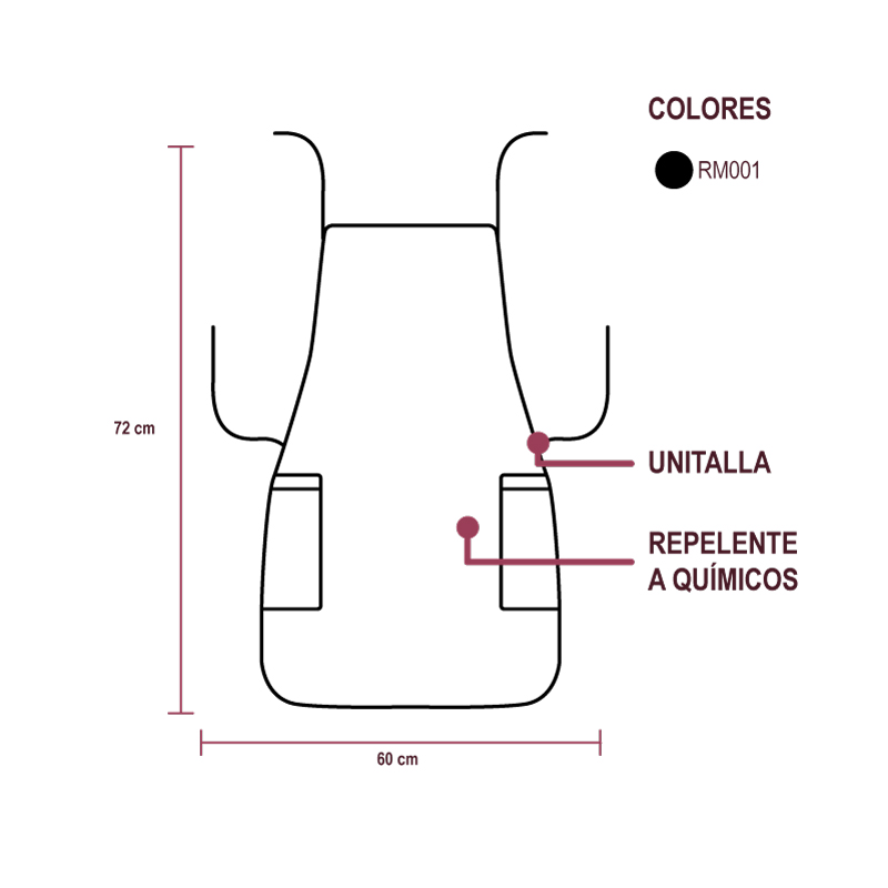 Elaborado con poliéster al interior y PVC al exterior para una completa protección de químicos y agua. Sus cintas ajustables lo hacen unisex y unitalla, cuenta con bolsas para introducir cualquier utensilio de belleza.
